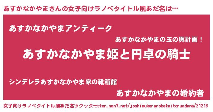 | 恥ずかしいあだ名 | 『プリティーあすかなかやま』 |