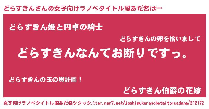 | 胡散臭い通販商品みたいなあだ名 | 『ガンによく効く高麗人参…その名も「どらすきん」』 |