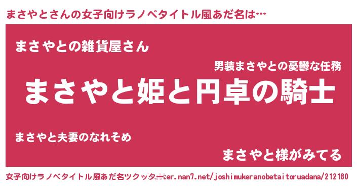 | 男性向けラノベタイトル風あだ名 | 『まさやとの憂鬱』 |
