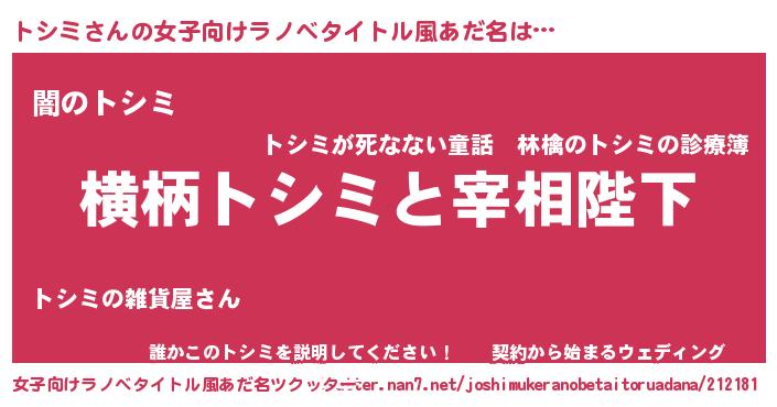 | 男性向けラノベタイトル風あだ名 | 『トシミに滅ぼされるだけの簡単なお仕事です』 |