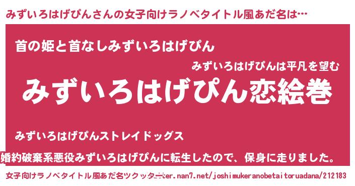 | 男性向けラノベタイトル風あだ名 | 『ノーゲーム・ノーミズイロハゲピン』 |