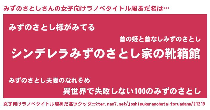 | 胡散臭い通販商品みたいなあだ名 | 『伝統あるサプリメント…その名も「みずのさとし」』 |