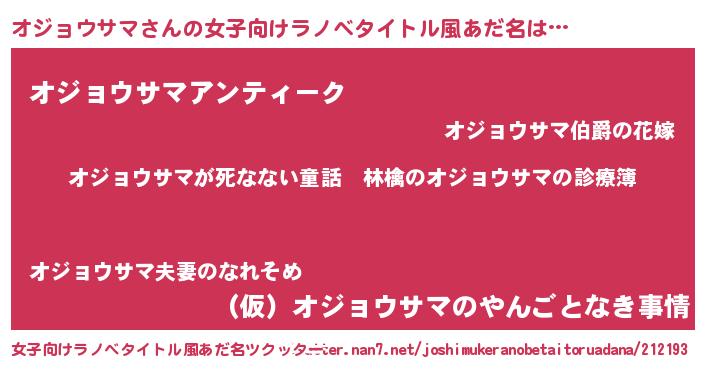 | 意味不明あだ名 | 『住所不定無職オジョウサマ(79歳)』 |