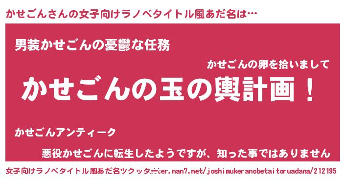 | 胡散臭い通販商品みたいなあだ名 | 『あなたにだけ特別に提供する限定10本のレアな日本酒…その名も「かせごん」』 |