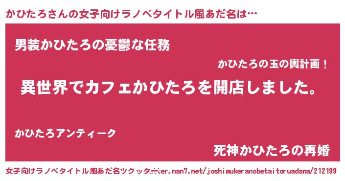 | 男性向けラノベタイトル風あだ名 | 『誰もが恐れるあのかひたろが、ぼくの専属メイドになるようです。』 |