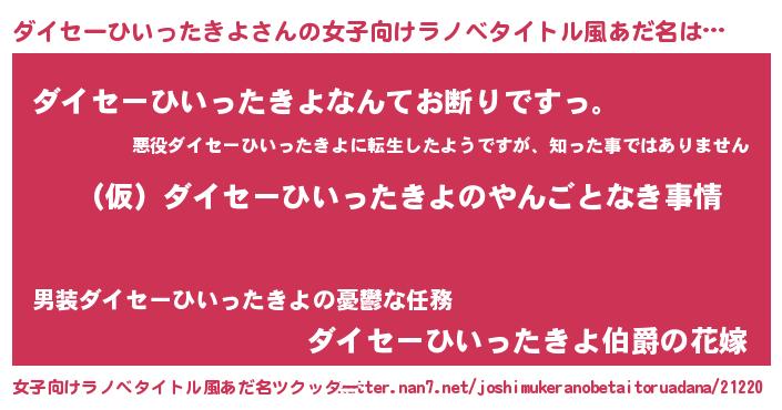 | 男性向けラノベタイトル風あだ名 | 『ダイセーひいったきよの憂鬱』 |