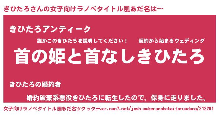 | 意味不明あだ名 | 『自称きひたろ』『なめこ科きひたろ属』 |