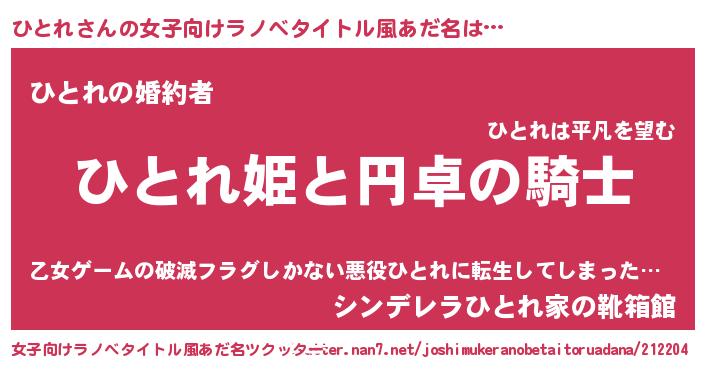 | 男性向けラノベタイトル風あだ名 | 『ヒトレアートオンライン』 |