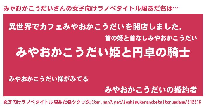 | 胡散臭い通販商品みたいなあだ名 | 『モテモテ間違いなし霊験あらたかなお札…その名も「みやおかこうだい」』 |