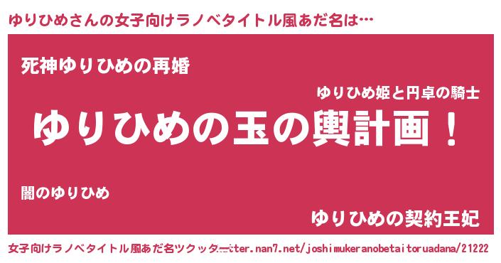 | ヘコむあだ名 | 『ゆりひめ(震え声)』『ゆりもー』 |