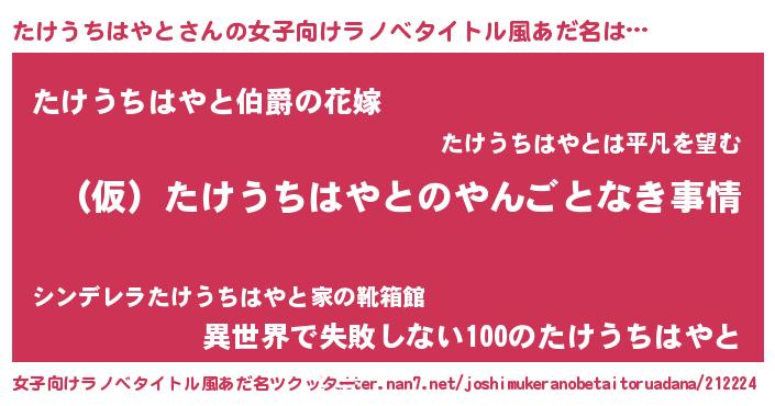 | 胡散臭い通販商品みたいなあだ名 | 『必ず成功するブレスレット…その名も「たけうちはやと」』 |