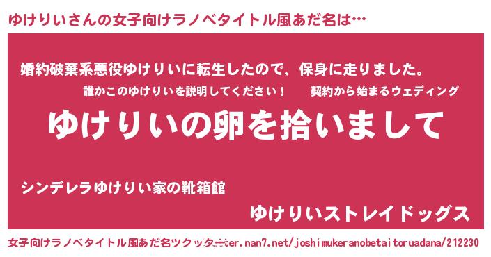 | 胡散臭い通販商品みたいなあだ名 | 『伝統あるサプリメント…その名も「ゆけりい」』 |