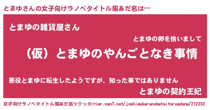 | 意味不明あだ名 | 『ペロリンとまゆ』『とまゆフォーエバー』 |