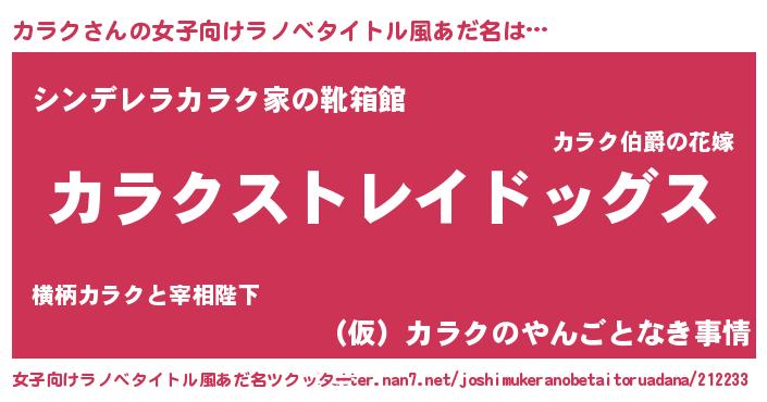 | 意味不明あだ名 | 『自称カラク』『ペロリンカラク』 |