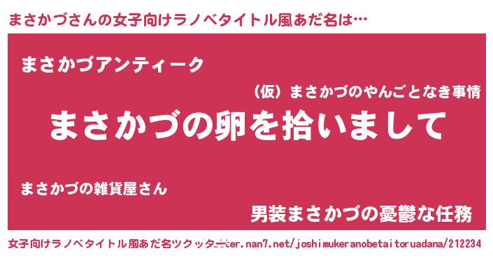 | 胡散臭い通販商品みたいなあだ名 | 『伝統あるサプリメント…その名も「まさかづ」』 |
