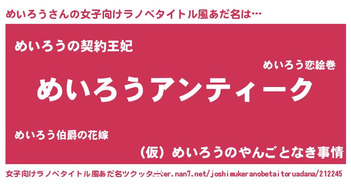 | 意味不明あだ名 | 『自称めいろう』『永久保存めいろう』 |