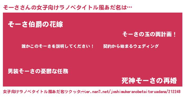 | 胡散臭い通販商品みたいなあだ名 | 『億万長者になれる霊験あらたかなお札…その名も「そーさ」』 |