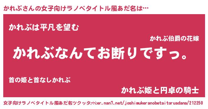 | 意味不明あだ名 | 『自称かれぶ』『とにかく怪しいかれぶ』 |