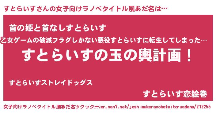 | ヘコむあだ名 | 『すとっふぃ~』『すとらいす(小並感)』 |