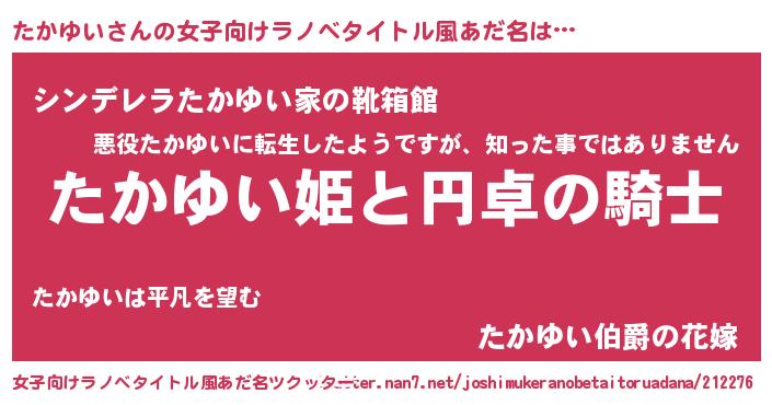 | 男性向けラノベタイトル風あだ名 | 『たかゆいの憂鬱』 |