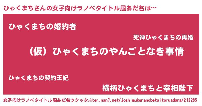| 男性向けラノベタイトル風あだ名 | 『ひゃくまちの憂鬱』 |