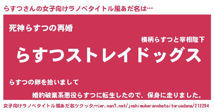| 意味不明あだ名 | 『自称らすつ』『眠気覚ましガムらすつ味』 |