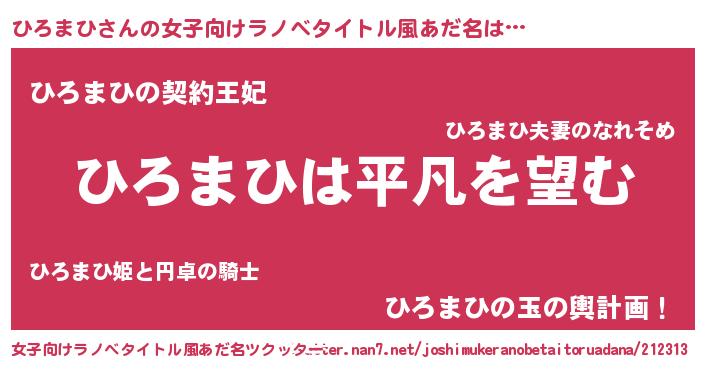 | 男性向けラノベタイトル風あだ名 | 『ダンジョンにひろまひを求めるのは間違っているだろうか』 |