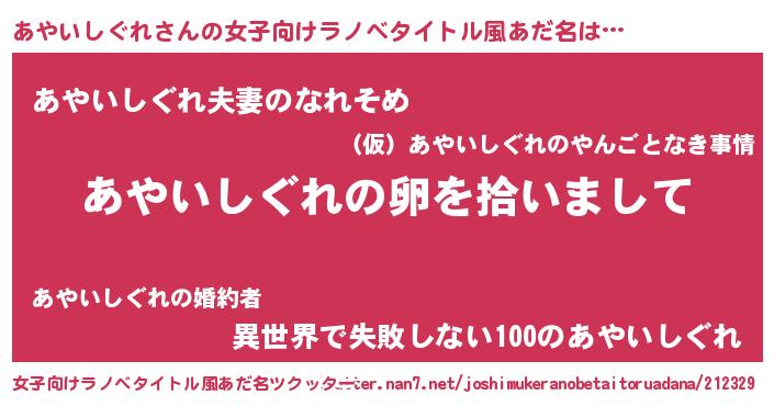 | 男性向けラノベタイトル風あだ名 | 『ダンジョンにあやいしぐれを求めるのは間違っているだろうか』 |