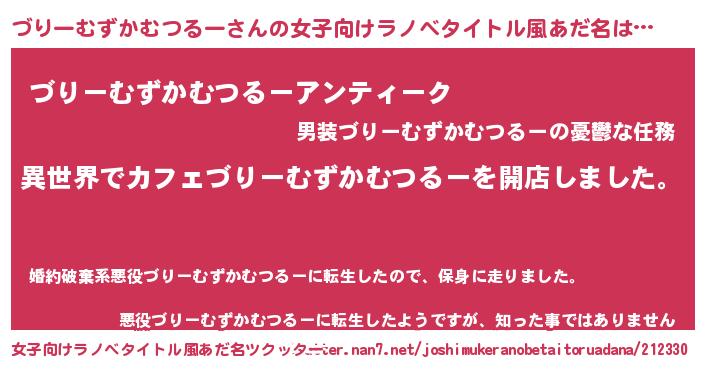 | 男性向けラノベタイトル風あだ名 | 『誰もが恐れるあのづりーむずかむつるーが、ぼくの専属メイドになるようです。』 |