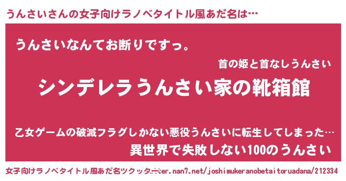 | 男性向けラノベタイトル風あだ名 | 『緋弾のウンサイ』 |