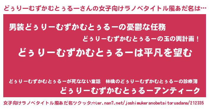 | 男性向けラノベタイトル風あだ名 | 『ダンジョンにどぅりーむずかむとぅるーを求めるのは間違っているだろうか』 |