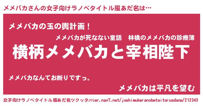 | 胡散臭い通販商品みたいなあだ名 | 『全米が絶賛したペンダント…その名も「メメバカ」』 |