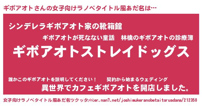 | 男性向けラノベタイトル風あだ名 | 『Re:ギボアオトから始める異世界生活』 |