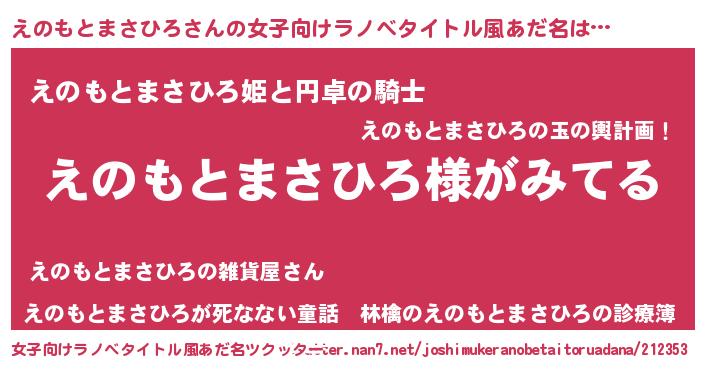 | 男性向けラノベタイトル風あだ名 | 『えのもとまさひろの嫁は女の子じゃないと思った?』 |