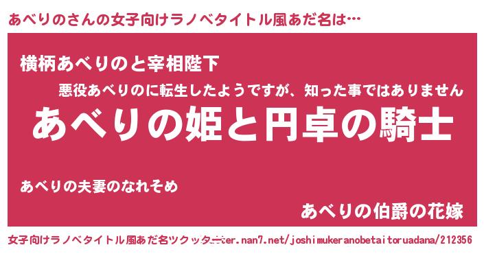 | 男性向けラノベタイトル風あだ名 | 『アベリノアートオンライン』 |