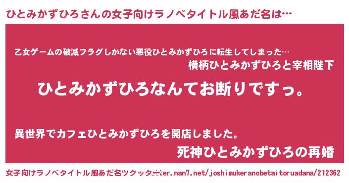 | 胡散臭い通販商品みたいなあだ名 | 『ガンによく効く高麗人参…その名も「ひとみかずひろ」』 |