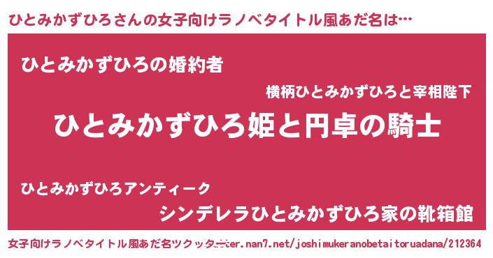 | 男性向けラノベタイトル風あだ名 | 『ひとみかずひろの憂鬱』 |