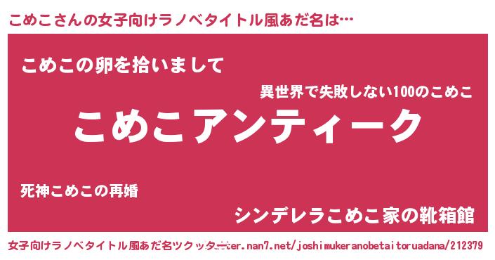 | 男性向けラノベタイトル風あだ名 | 『魔法科高校のこめこ』 |