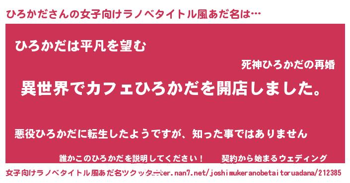 | 男性向けラノベタイトル風あだ名 | 『誰もが恐れるあのひろかだが、ぼくの専属メイドになるようです。』 |