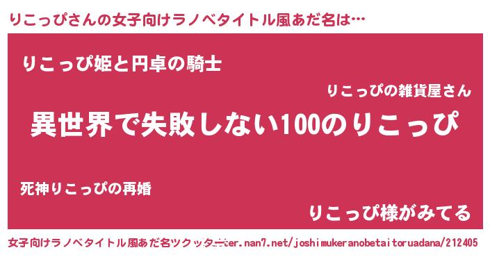| 胡散臭い通販商品みたいなあだ名 | 『絶対に幸福をもたらす水素水…その名も「りこっぴ」』 |