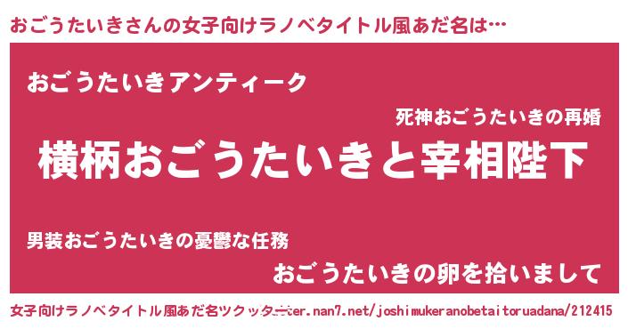 | 意味不明あだ名 | 『自称おごうたいき』 |