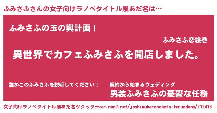 | 男性向けラノベタイトル風あだ名 | 『誰もが恐れるあのふみさふが、ぼくの専属メイドになるようです。』 |
