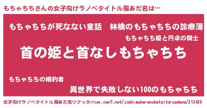 | ヒーロー風カッコイイあだ名 | 『仮面モチダー』『ネオモチャチチ』 |