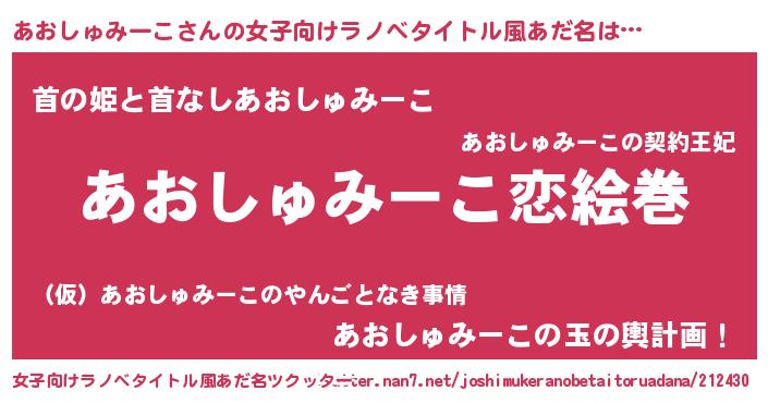 | 意味不明あだ名 | 『眠気覚ましガムあおしゅみーこ味』 |