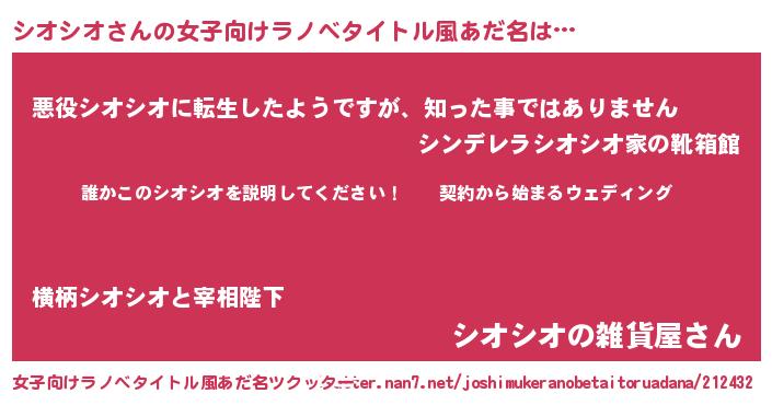 | 男性向けラノベタイトル風あだ名 | 『シオシオアートオンライン』 |