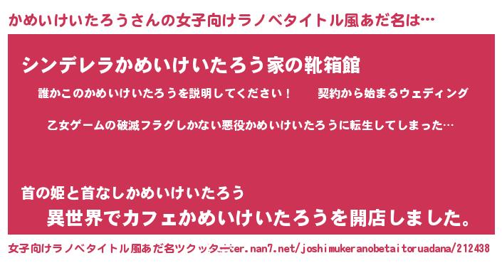 | 男性向けラノベタイトル風あだ名 | 『魔弾の王とかめいけいたろう』 |