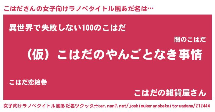 | ファンタジー風あだ名 | 『コハフェル』『コハディッシュ』 |