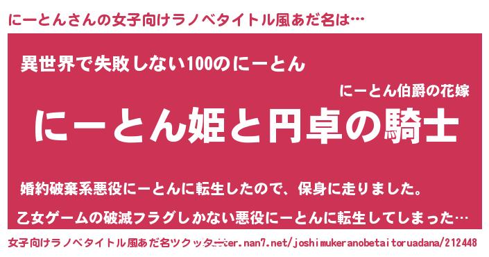 | 男性向けラノベタイトル風あだ名 | 『ニートンアートオンライン』 |