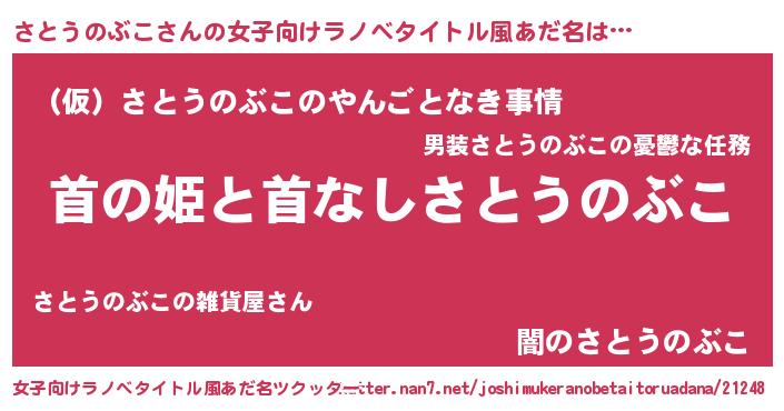 | 男性向けラノベタイトル風あだ名 | 『はたらくさとうのぶこさま!』 |