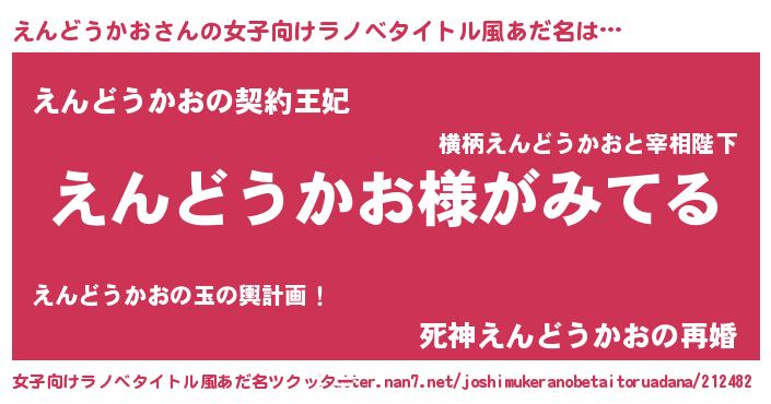 | 男性向けラノベタイトル風あだ名 | 『えんどうかおの嫁は女の子じゃないと思った?』 |